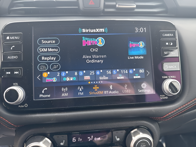 - Radio: AM/FM Audio System -inc: RDS, MP3, aux-in, 8" color touchscreen display (A-IVI PH2 DA), SiriusXM satellite radio, NissanConnect Services powered by SiriusXM featuring Apple CarPlay and Android Auto, Bluetooth® hands-free phone system, streaming audio via Bluetooth®, interface for iPod and other compatible devices, hands-free text messaging assistant, Siri Eyes Free/Google Assistant voice recognition, 6 speakers, 3 USB ports (2-charge only)