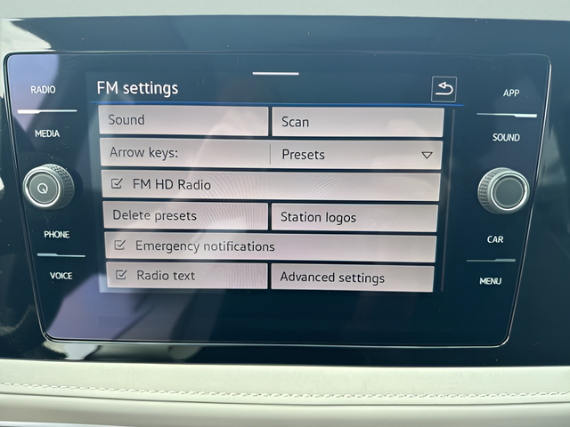 - Radio: MIB3 Composition Media AM/FM/HD -inc: 8" touchscreen multifunction center display, WMA/MP3/FLAC player w/USB-C, voice control, capability for in-vehicle 4G LTE enabled Wi-Fi (cellular data plan required; includes limited trial), capability for VW Car-Net services (capabilities for certain services vary; requires enrollment or subscription), 6-speaker sound system, Bluetooth® connectivity (for compatible devices), SiriusXM w/360L (w/3-month free trial subscription; 360L services require acceptance of Car-Net terms), App-Connect smartphone integration (w/Apple CarPlay, Android Auto and MirrorLink) via USB, wireless App-Connect smartphone integration (for compatible devices) w/multi-phone pairing capability, USB-C enhanced charging up to 45W (for compatible devices) and Qi wireless inductive charger (for compatible mobile phones and accessories) All VW Car-Net services subject to terms & limitations. Some services require a paid subscription. See dealer or vw.com/carnet for details.